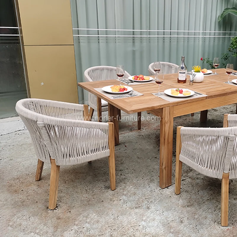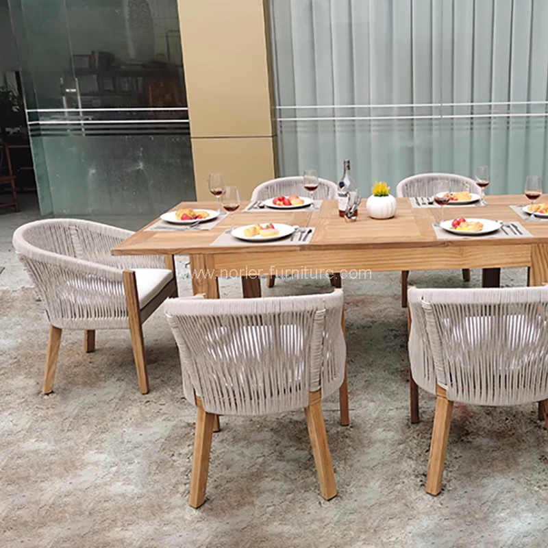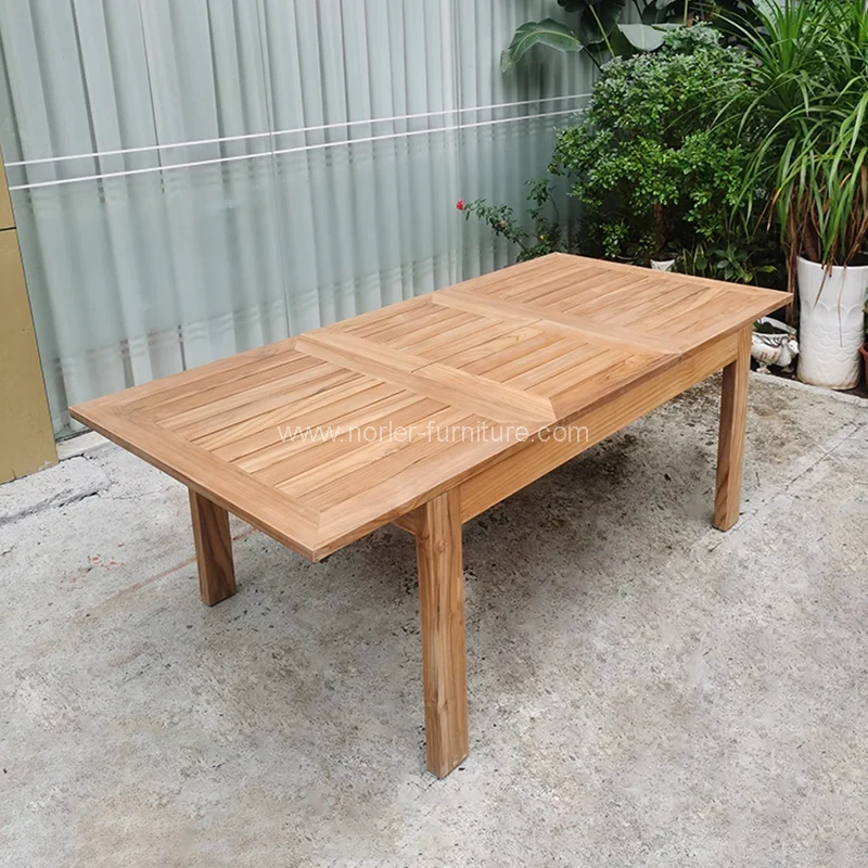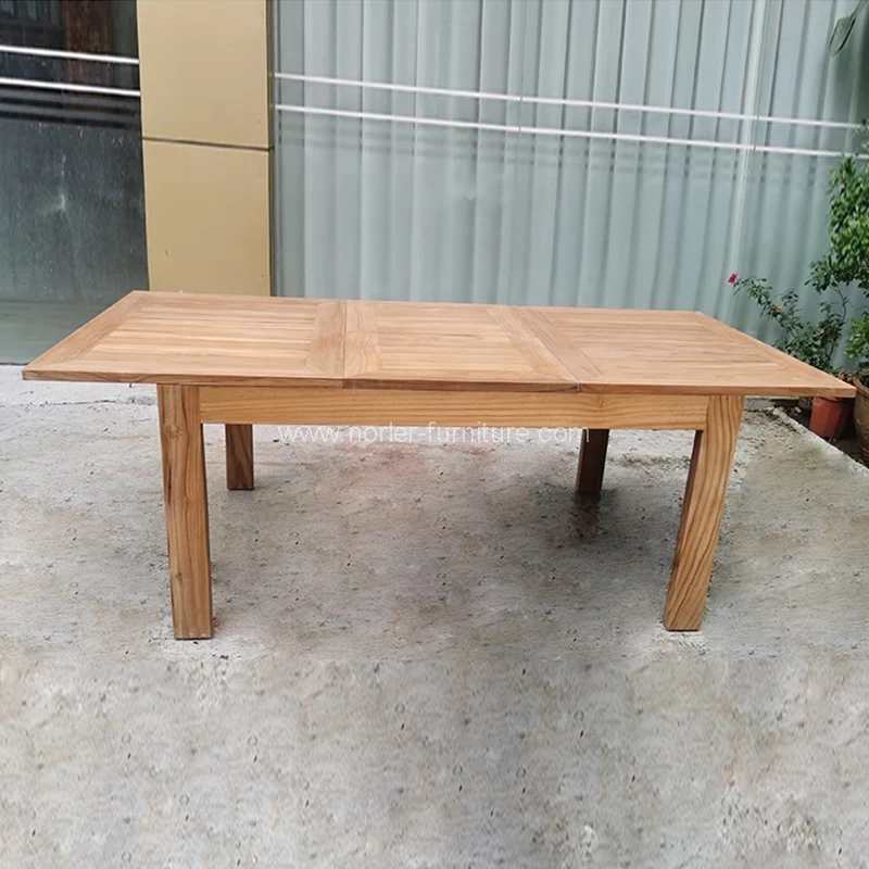 Tavolo da pranzo estensione esterna personalizzata in China - Design in più soddisfa le funzionalità pratiche realizzate con legno di teak naturale solido al 100%, questo elegante tavolo esansibile da pranzo mette in mostra i toni ricchi e caldi e l'eccezionale durata che rendono il teak un materiale prezioso per mobili sottili. La superficie finita a mano evidenzia il grano naturale del legno, garantendo che ogni pezzo sia unico. Progettato sia per lo stile che per la versatilità, il tavolo presenta un meccanismo di estensione senza soluzione di continuità, che consente di regolare senza sforzo la sua lunghezza per ospitare altri ospiti quando necessario, perfetto per cene intime o incontri più grandi. Per adattarsi perfettamente al tuo spazio, offriamo opzioni di dimensionamento personalizzate, adattando le dimensioni del tavolo alle tue specifiche. Che sia collocato in un accogliente angolo per la colazione o in una spaziosa sala da pranzo, questo tavolo in teak fonde l'artigianato classico con comodità moderna. La sua robusta costruzione garantisce un uso duraturo, mentre il teak a bassa manutenzione resiste naturalmente all'umidità, alla deformazione e ai parassiti. Un vero fulcro per qualsiasi casa, questa tabella estendibile offre funzionalità senza compromettere l'eleganza.