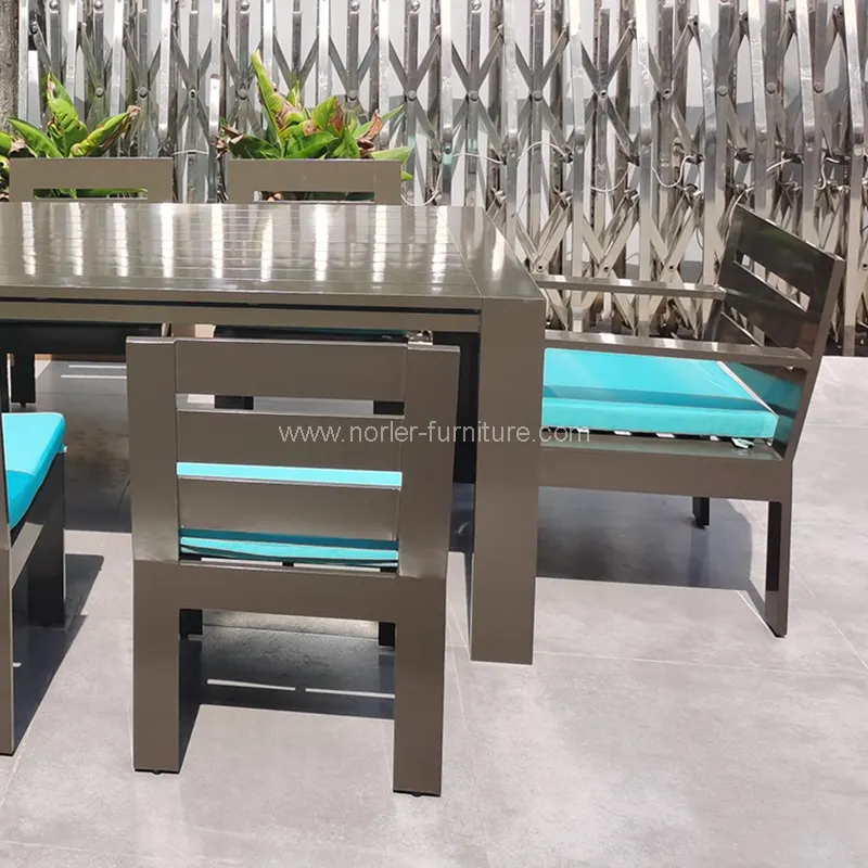 Il produttore del set da pranzo in alluminio di lusso in alluminio di Norler China si è concentrato su mobili per esterni per molti anni e ha accumulato una ricca esperienza nella progettazione e produzione per garantire un'eccellente qualità del prodotto. Utilizza in lega di alluminio di alta qualità, PE rattan, tessuto impermeabile e lussuosi materiali da tavolo di standard internazionali per garantire la durata dei mobili. Con un aspetto elegante, è adatto a luoghi all'aperto di fascia alta come courti di villa, terrazze, a bordo piscina, resort, ristoranti di lusso, ecc., Rendere un piacere ogni ristorante all'aperto!